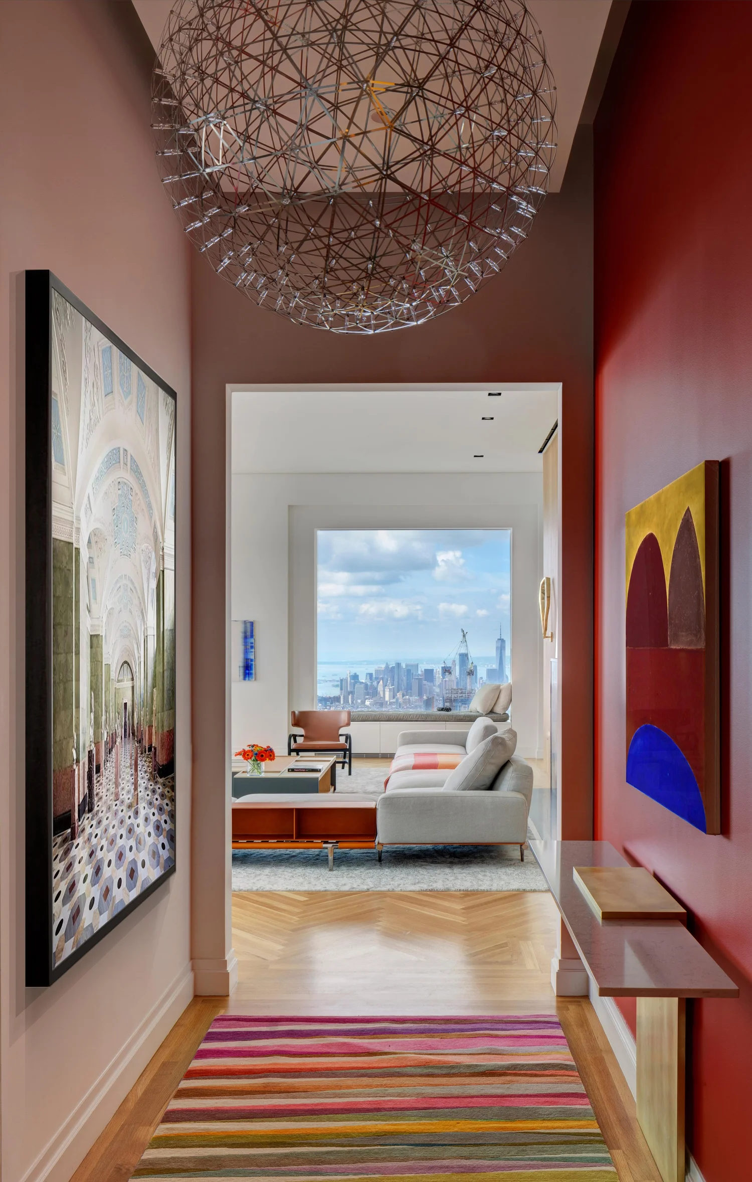 Conceived by architect Rafael Viñoly—432 Park Avenue is the tallest residential skyscraper in the Western Hemisphere. This apartment designed by John Beckmann and his design firm Axis Mundi has the most breathtaking views in Manhattan.Known for their glamorous low-slung aesthetic, Axis Mundi took the challenge to design the residence for an American client living in China with a family of four, and an important art collection (including the likes of Cy Twombly, Gerhard Richter, Susan Frecon, Vik Muniz and Lisette Schumacher, among others). Awarded Best Residential Interior - ARCHMARATHON 2020